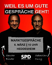 Generalsekretär der SPD Baden-Württemberg mit Sebastian Cuny an Infostand am Heddesheimer Wochenmarkt