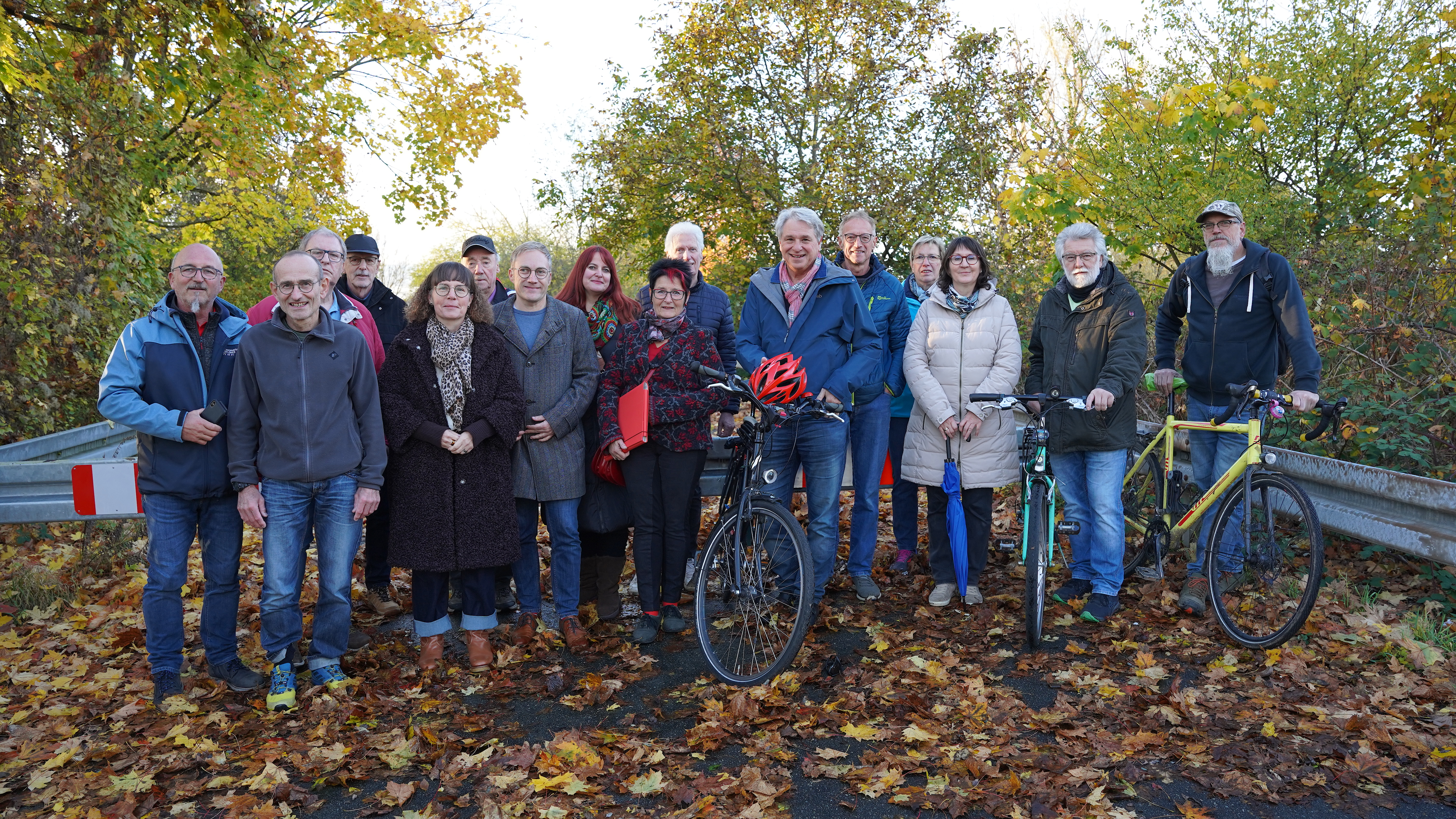 Viele interessierte Bürgerinnen und Bürger aus Laudenbach und sogar ein Vertreter der SPD Heppenheim kamen bei schönstem Herbstwetter zum Vor-Ort-Termin am Laudenbacher Kopf der ehemaligen Brücke zwischen Laudenbach und Heppenheim zusammen. Nachdem diese 2022 abgerissen wurde, besteht keine direkte Radwegverbindung mehr zwischen den Nachbarkommunen, die sich trotz Bundesländergrenze nahe stehen.
