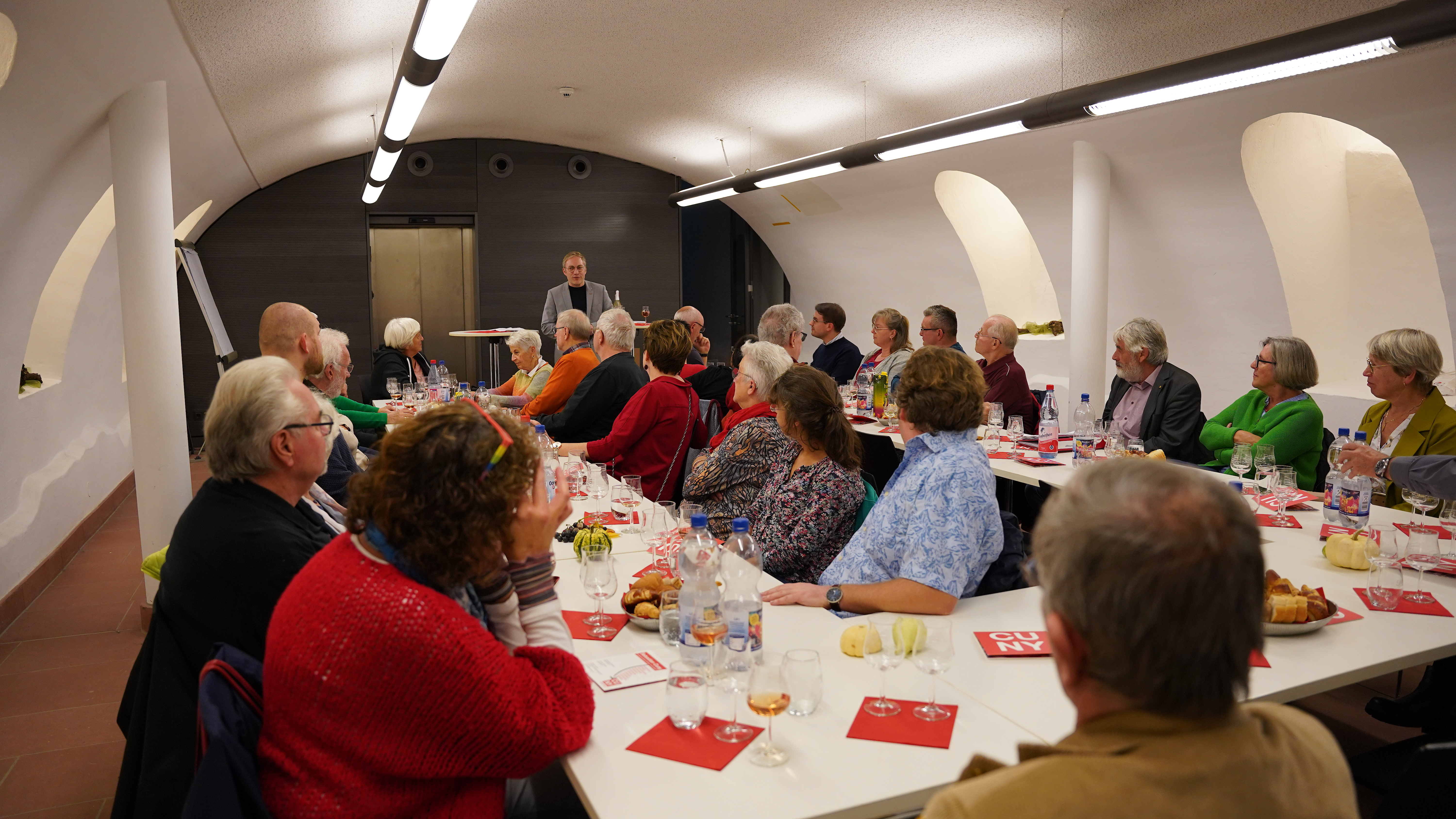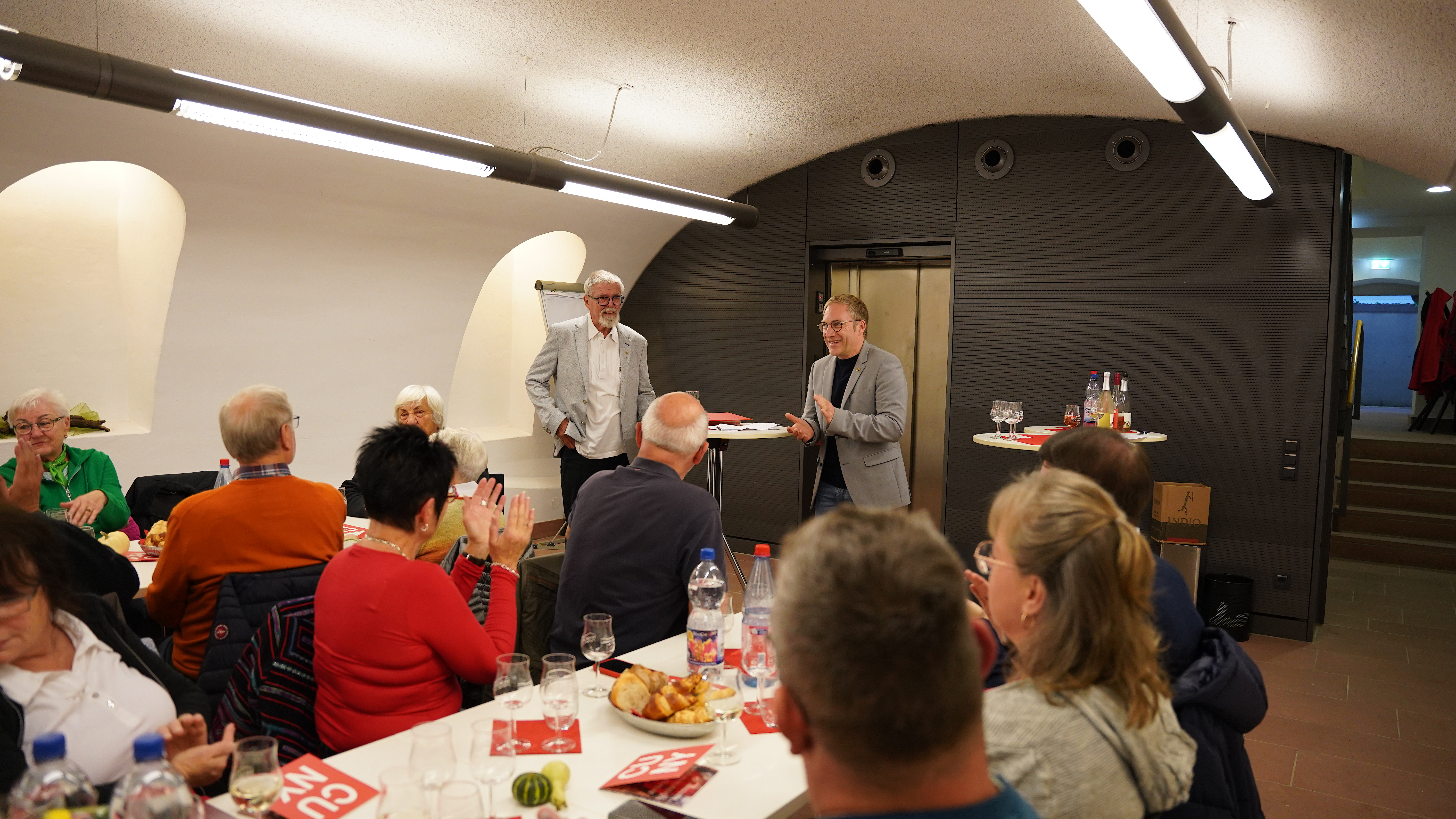Die Politische Weinprobe des SPD-Landtagsabgeordneten Sebastian Cuny hat fast schon Tradition: schon im Wahlkampf und selbstverständlich auch seitdem der Schriesheimer die Menschen an Bergstraße und Neckar im Landtag vertreten darf, veranstaltet er jährlich eine Politische Weinprobe. Dieses Mal im Gewölbekeller des Hemsbacher Rathauses und mit seinem Fraktionskollegen Andreas Kenner aus Kirchheim unter Teck als Ehrengast.