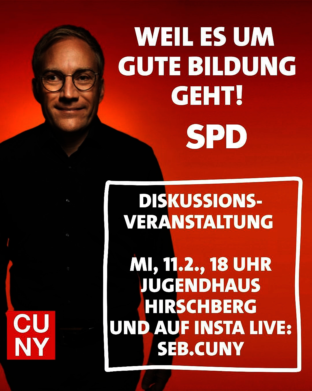 Weil es um gute Bildung geht: Sebastian Cuny diskutiert mit Schüler:innen in Hirschberg und live auf Instagram