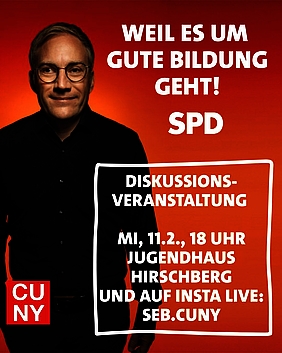 Die Veranstaltung findet am Mittwoch, 11. Februar, 18 bis 19.30 Uhr, im Jugendhaus in Hirschberg (Am Sportzentrum) statt und wird live auf Instagram (unter seb.cuny) übertragen.