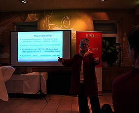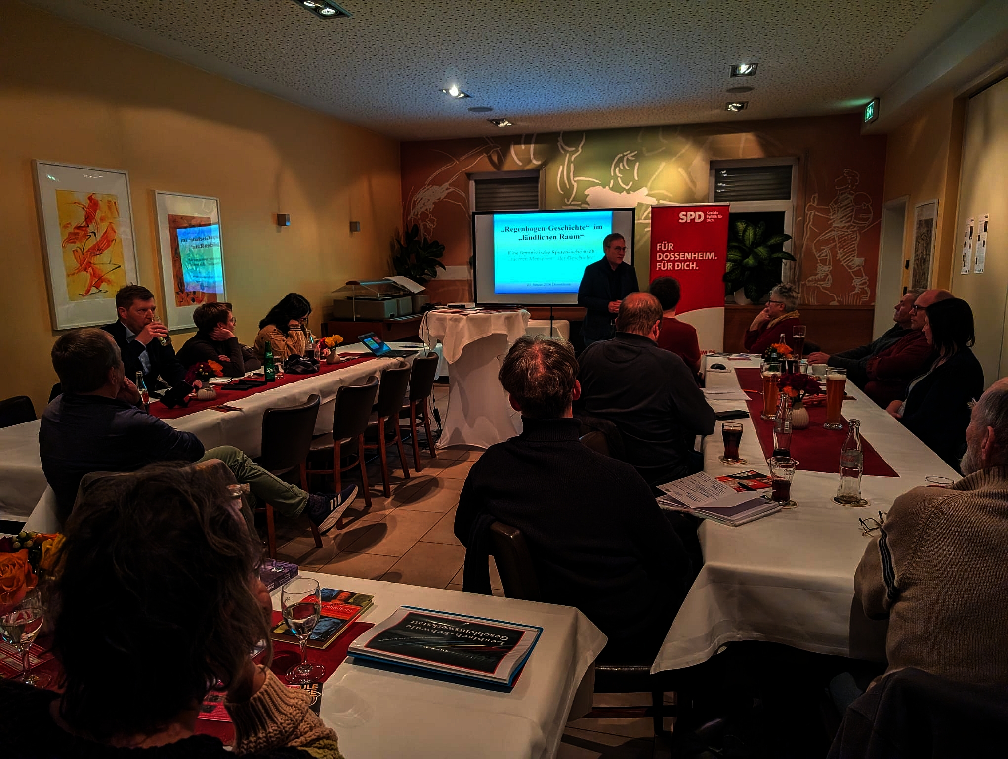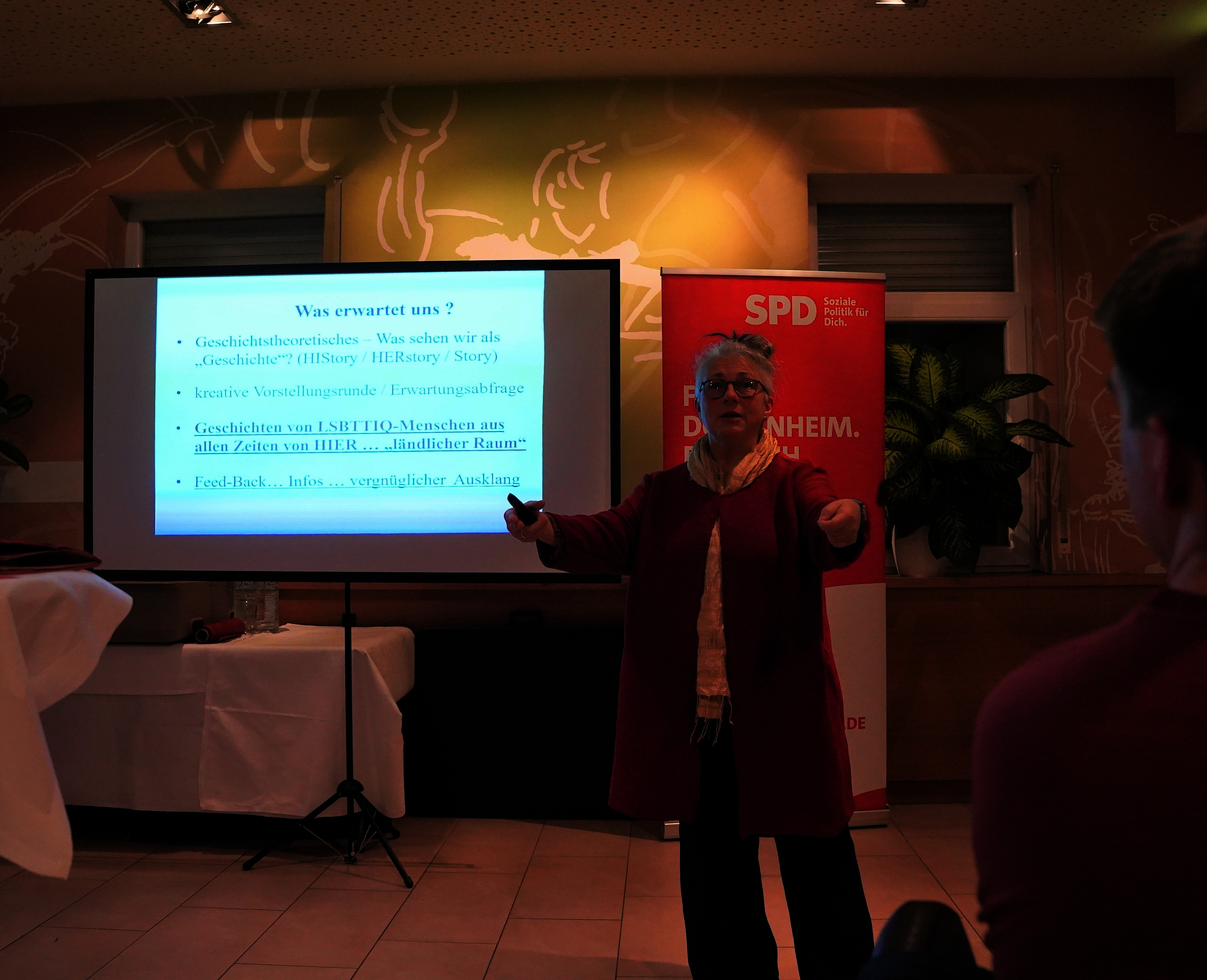 Nicht nur die letzte Januarwoche leuchtete für den SPD-Landtagsabgeordneten Sebastian Cuny in den Regenbogenfarben, aber diese ganz besonders: der Sozialdemokrat stellte sie unter das Motto „…weil es um unsere offene Gesellschaft geht“ und begrüße bei seiner Veranstaltung mit der lesbisch-schwulen Geschichtswerkstatt Rhein-Neckar in Dossenheim viele Interessierte. Die Freie Historikerin Ilona Scheidle schilderte bewegende „nicht-sichtbare“ Lebensgeschichten, die die Geschichtswerkstatt durch ihre Arbeit sichtbar macht. SPD-Landtagsabgeordneter dazu: „Die Biographien zeigen, wie schwierig, brutal und leider manchmal auch tödlich der Weg zu unserer heutigen offenen Gesellschaft war. Es gibt wieder politische Kräfte, die das Rad zurückdrehen wollen und die Hasskriminalität gegenüber queeren Menschen steigt. Aber wir werden unsere Freiheit verteidigen“, so der Sozialdemokrat, der darauf hinweist, dass auf SPD-Initiative Baden-Württemberg zum ersten Flächenbundesland wurde, das sich zum LSBTIQA+-Freiheitsraum erklärt hat.