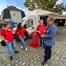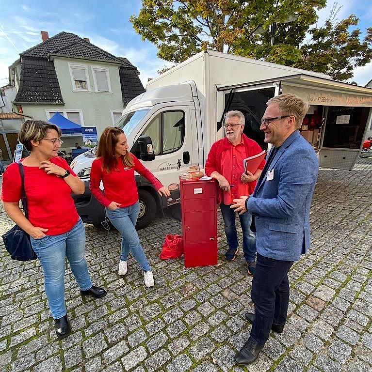 Sebastian Cuny im Gespräch auf dem Laudenbacher Wochenmarkt